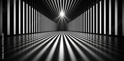 striking abstract image of white empty room featuring horizontal lines and dramatic lighting, creating sense of depth and perspective