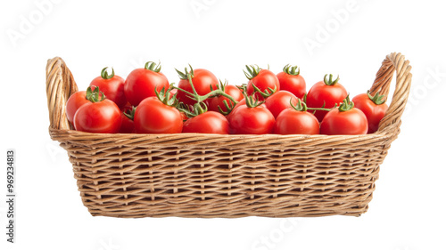 Striking arrangement of ripe tomatoes in a basket capturing their vivid color and allure.