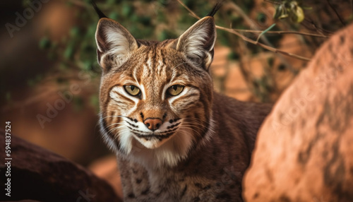 Striking big cat staring, beauty in nature generated by AI