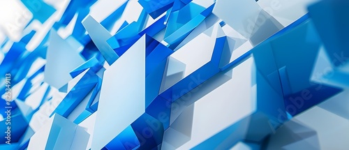 Striking Blue and White Geometric Abstract with Interlocking Polygonal Shapes