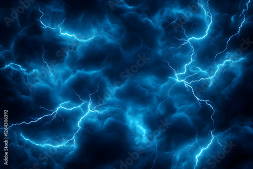 Striking Blue Lightning Bolts Splitting Dark Storm Clouds Backdrop for Presentations generative AI