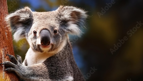 Striking CloseUp of a Koala Clinging to Eucalyptus Tree in the Australian Outback, Showcasing Soft Fur Textures and Gentle Expressions Amidst the Scorched Sunlit Bushland.