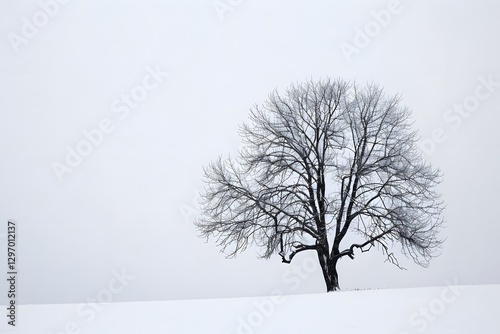 striking dark tree silhouette against white sky highlighting simplicity and contrast. generative ai