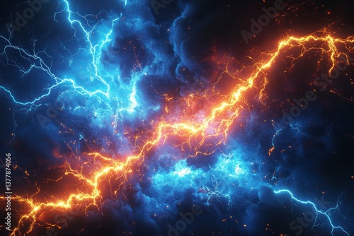 Striking Lightning Bolt Background with Orange and Blue Energy Clash