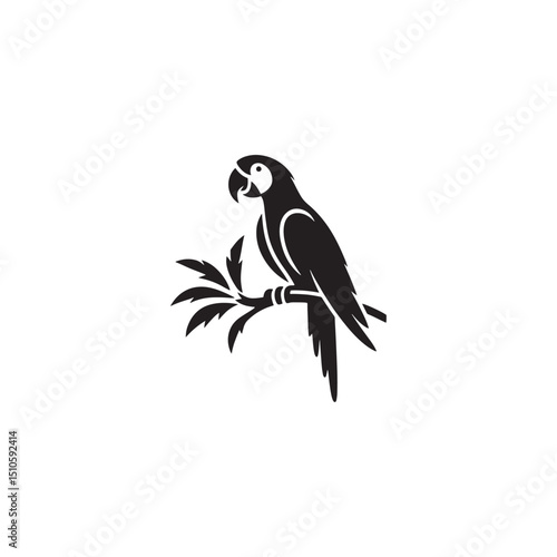 **"Striking Macaw Vector Silhouette: Exotic Parrot Design Featuring Long Tail Feathers, Curved Beak, and Perched Pose in Clean, Minimalist Style for Crafts and Digital Art"**
