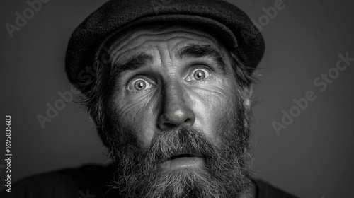 striking portrait of surprised american homeless man face his large eyes filled with astonishment and emotion