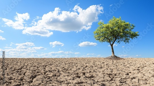 Striking resilience lone tree on cracked earth remote landscape nature photography open sky symbol of survival