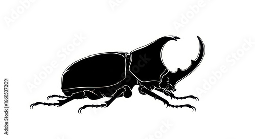 Striking rhinoceros beetle illustration against clean white background enhancing graphic appeal