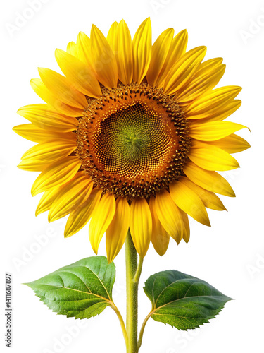 Striking sunflower portrait with vibrant yellow petals against a pure white backdrop