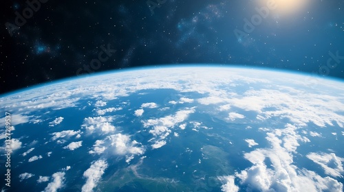 Striking View of Earth from Space Surrounded by Stars and a Radiant Sunlight : Generative AI