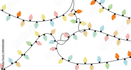 String of colorful, hand drawn christmas lights