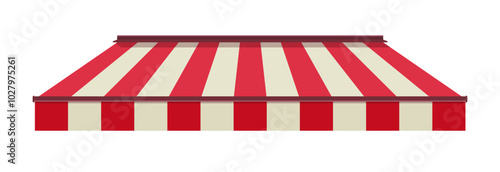 Striped awning for cafe. Striped shop canopy. Store or cafe sunshade awning.