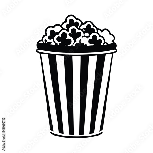 Striped Popcorn Bucket Icon Black and White Illustration