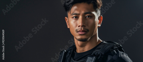 Strong and Fit: Indonesian Policeman Portrait in Black Background
