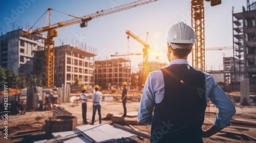 Structural engineer or architect working at the outdoors construction site.