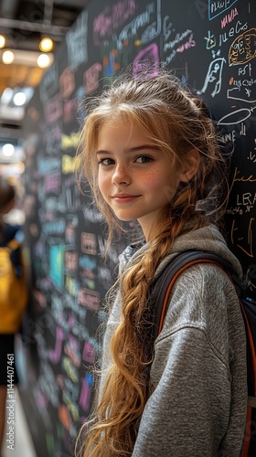 Student Drawing on Chalkboard with Words Fostering Idea Growth and Learning