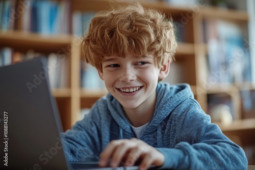 Student naturally leaning over a desk, engrossed in reading comprehension on a laptop, unposed and candid moment, capturing the authenticity of elearning in progress