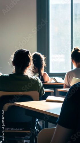 Students engaged in classroom learning with sunlight streaming in
