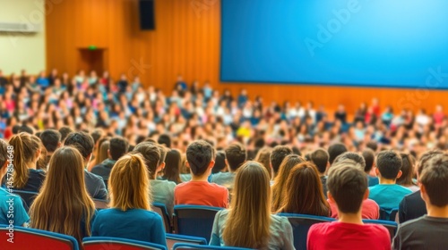 Students in lecture hall watching presentation