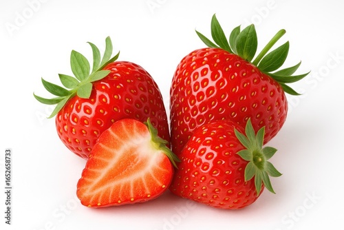 Studio macro shot of ripe strawberries isolated on white backdrop