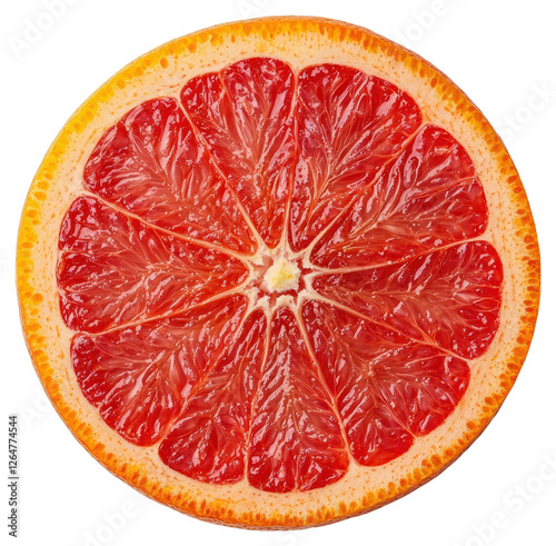 Studio Shot of a Sliced Red Grapefruit with Juicy Texture Isolated on Transparent Background