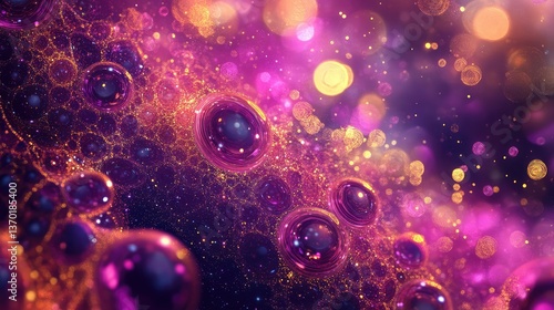 Stunning Abstract Composition of Colorful Bubbles with Vivid Purple and Orange Hues, Creating an Enchanting Atmosphere of Light and Depth