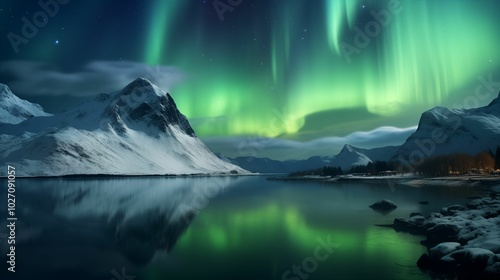 Stunning aurora borealis lights up the night sky with vibrant colors background. Generative ai