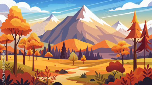 Stunning autumn landscape featuring vibrant forests and majestic mountains during golden hour