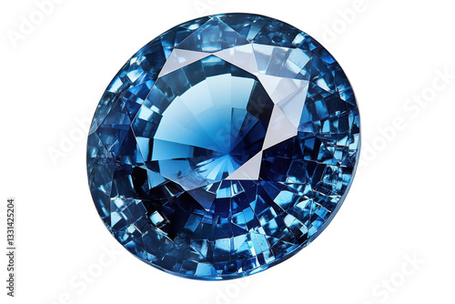 Stunning blue gemstone with brilliant cut and sparkling facets on a white background