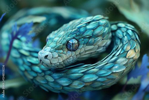 Stunning Blue Scaled Snake with Hypnotic Eyes in a Mystical Forest