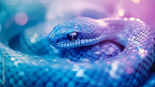 Stunning Blue Snake Closeup Vibrant Scales Reptile Wildlife Nature Photography Exotic Animal Blue Scales Detailed Texture Serpentine Beauty Wild Animal Portrait Close Up Detailed Image High Resolution