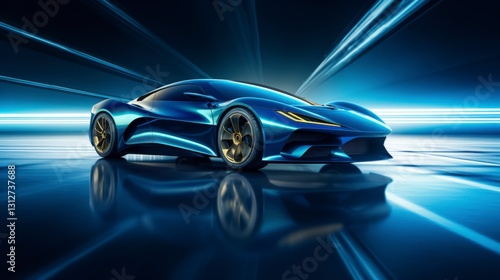 Stunning Blue Supercar with Golden Wheels on a Speedway
