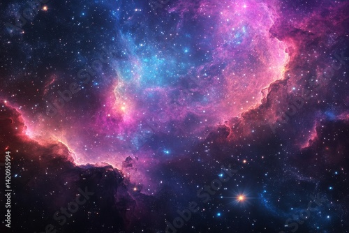 Stunning celestial scene showcasing vibrant galaxies with luminous stars and ethereal nebulae for cosmic-themed illustrations and astrophysics concepts