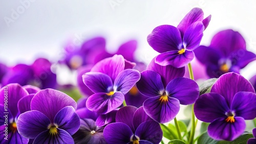 Stunning Close-up of Purple Violets Isolated on White Background - High-Resolution Flower Photography