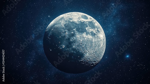 Stunning close-up view of the moon in a starry night sky, showcasing its craters