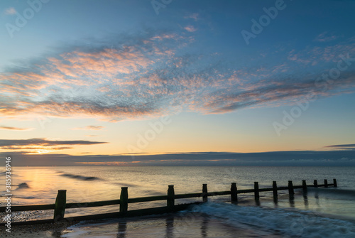 Stunning colorful sunrise over beach landscape on English South coast
