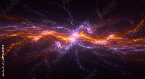 Stunning cosmic energy bursts with vibrant orange and purple hues against a deep space backdrop for impactful science and technology presentations