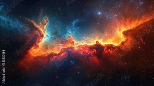 Stunning Cosmic Landscape with Bright Colors and Fiery Nebulae in Deep Space, Displaying Star Formation and Galactic Beauty