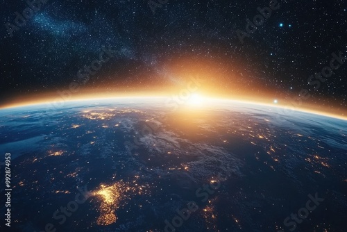 Stunning cosmic scene featuring stars and a view of Earth in the background