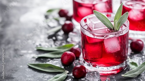 Stunning Cranberry Drink with Ice and Fresh Herbs