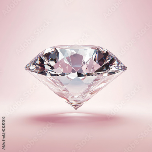 stunning diamond with intricate facets, floating against soft pink background, radiating elegance and luxury