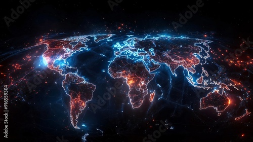 Stunning digital world map with glowing connections, showcasing the interconnectedness of global networks and modern technology.