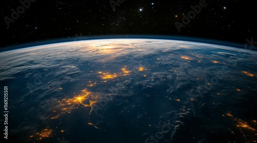 Stunning Earth at Night City Lights Clouds and Starry Sky Space View