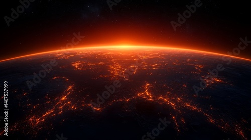 Stunning Earth Sunrise A fiery sunrise illuminates Earth's city lights from space