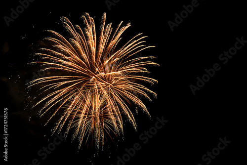Stunning golden fireworks explode brilliantly against the night sky, igniting celebrations and moments of pure joy.