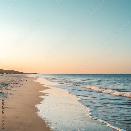 Stunning golden sunset on empty coastal beach seascape high resolution picture