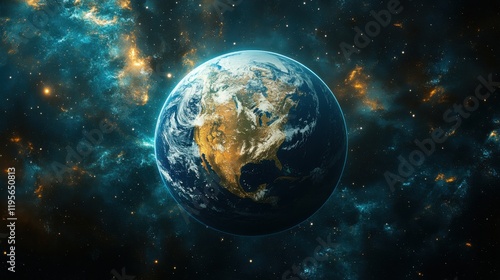 Stunning High-Resolution Image of Earth in Space Surrounded by Stars and Cosmic Elements, Perfect for Projects Related to Nature, Science, and Exploration