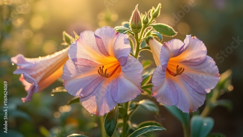 Stunning Lavender Flowers in Golden Sunlight Dew Drops Morning Bloom