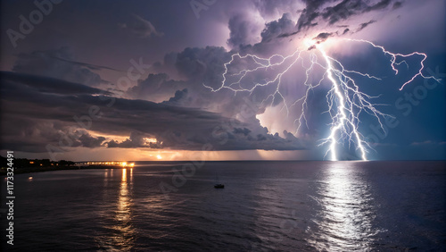 Stunning Lightning Strikes Over Calm Ocean During Dramatic Storm
