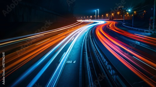 Stunning long exposure of light trails on a curved highway at night